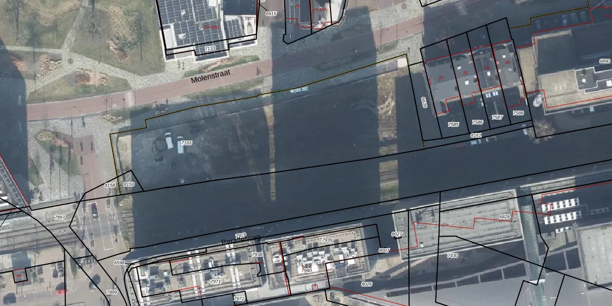 Het perceel waarop Molenstraat 12-503 staat heeft een oppervlakte van 2535 m². Dit is een zeer groot perceel. De perceeloppervlakte wordt geregistreerd door het Kadaster. Gedetailleerde informatie over de maten van dit perceel kunt u vinden in het rapport Kadastrale kaart met maatvoering van Molenstraat 12-503.
