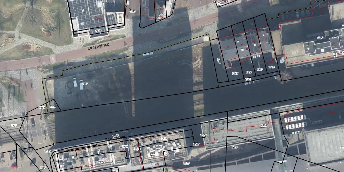 Het perceel waarop Molenstraat 12-505 staat heeft een oppervlakte van 2535 m². Dit is een zeer groot perceel. De perceeloppervlakte wordt geregistreerd door het Kadaster. Gedetailleerde informatie over de maten van dit perceel kunt u vinden in het rapport Kadastrale kaart met maatvoering van Molenstraat 12-505.