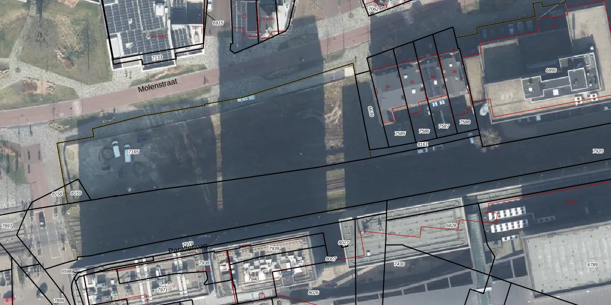 Het perceel waarop Molenstraat 12-506 staat heeft een oppervlakte van 2535 m². Dit is een zeer groot perceel. De perceeloppervlakte wordt geregistreerd door het Kadaster. Gedetailleerde informatie over de maten van dit perceel kunt u vinden in het rapport Kadastrale kaart met maatvoering van Molenstraat 12-506.