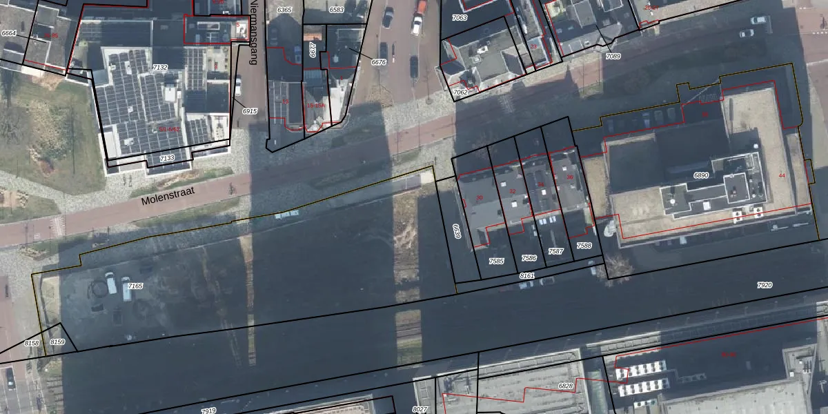 Het perceel waarop Molenstraat 16-G staat heeft een oppervlakte van 2535 m². Dit is een zeer groot perceel. De perceeloppervlakte wordt geregistreerd door het Kadaster. Gedetailleerde informatie over de maten van dit perceel kunt u vinden in het rapport Kadastrale kaart met maatvoering van Molenstraat 16-G.