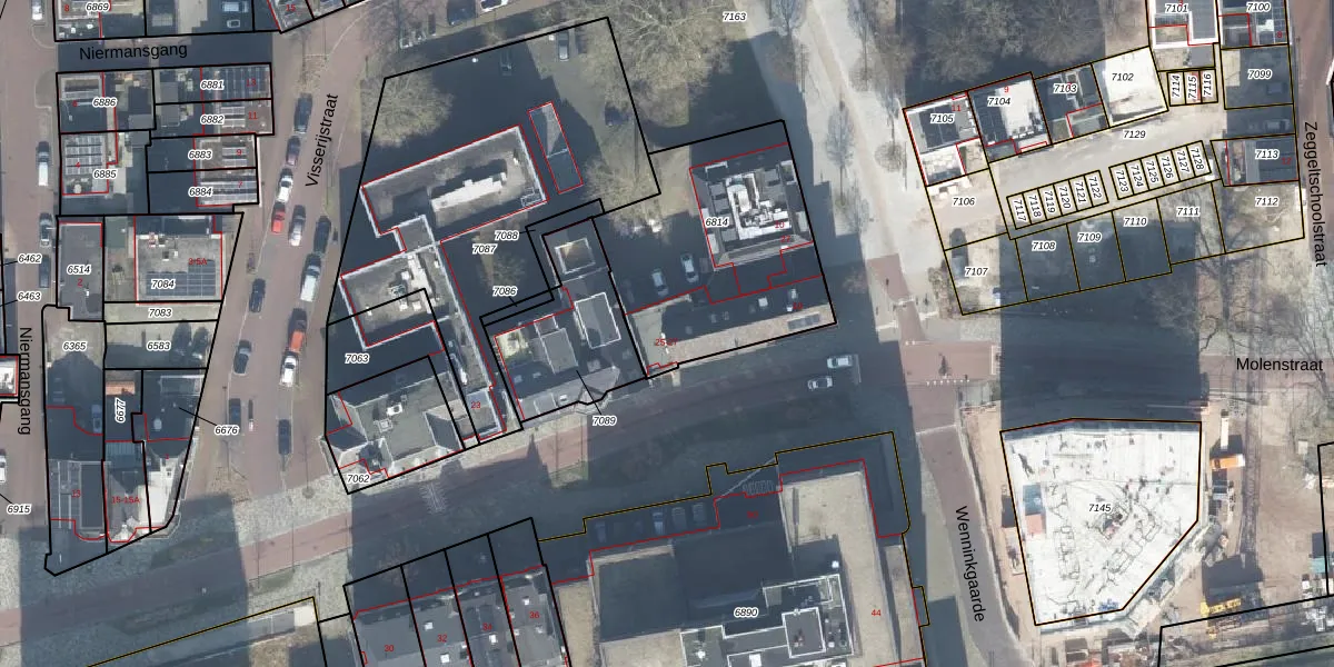 Het perceel waarop Molenstraat 27 staat heeft een oppervlakte van 905 m². Dit is een groot perceel. De perceeloppervlakte wordt geregistreerd door het Kadaster. Gedetailleerde informatie over de maten van dit perceel kunt u vinden in het rapport Kadastrale kaart met maatvoering van Molenstraat 27.