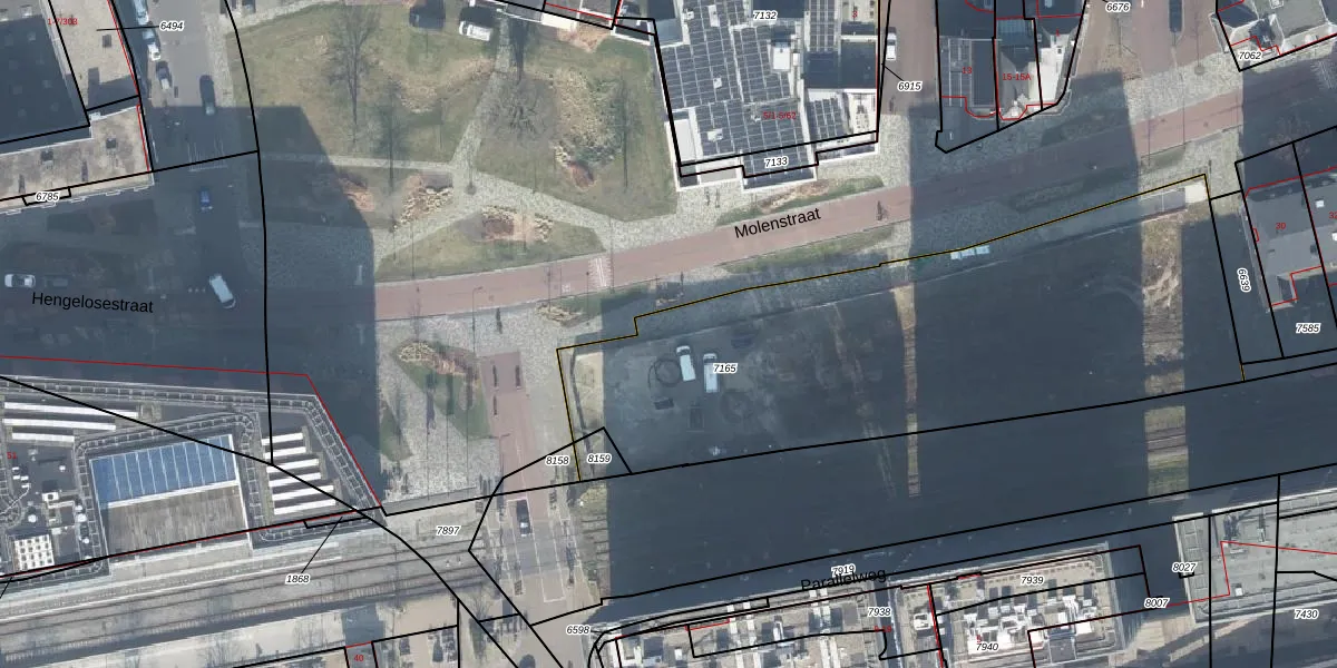 Het perceel waarop het adres ligt is ESD00-C-7165. De afkorting 'ESD00' staat voor kadastrale gemeente Enschede. Het perceel is met 2535 m² relatief groot. Het gemiddelde ligt in de kadastrale gemeente Enschede op 548,52 m². Het grootste perceel in de kadastrale gemeente is 10,7 ha. Het kleinste perceel heeft een oppervlakte van 0 m². Op het perceel zijn 103 adressen aanwezig. De huidige grenzen van het perceel zijn digitaal in de Basisregistratie Kadaster (BRK) geregistreerd op 27-06-2025.