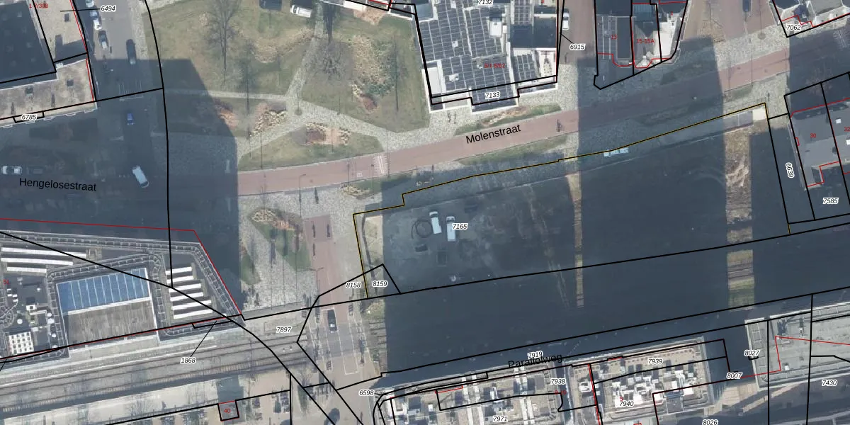 Het perceel waarop Molenstraat 4-32 staat heeft een oppervlakte van 2535 m². Dit is een zeer groot perceel. De perceeloppervlakte wordt geregistreerd door het Kadaster. Gedetailleerde informatie over de maten van dit perceel kunt u vinden in het rapport Kadastrale kaart met maatvoering van Molenstraat 4-32.