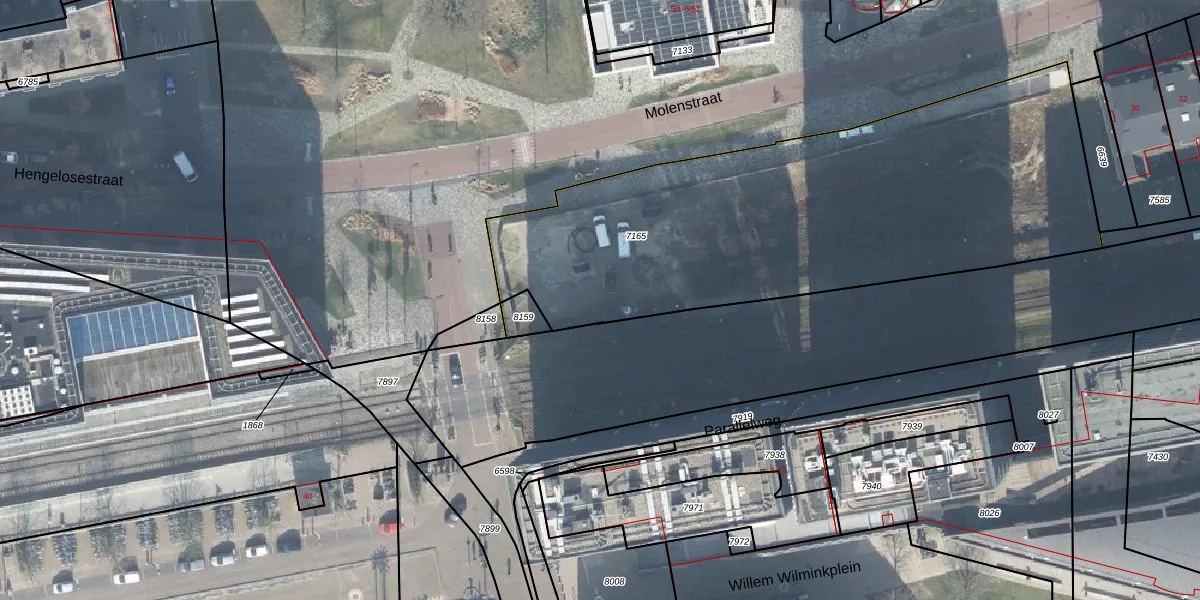 Het perceel waarop Molenstraat 4-45 staat heeft een oppervlakte van 2535 m². Dit is een zeer groot perceel. De perceeloppervlakte wordt geregistreerd door het Kadaster. Gedetailleerde informatie over de maten van dit perceel kunt u vinden in het rapport Kadastrale kaart met maatvoering van Molenstraat 4-45.