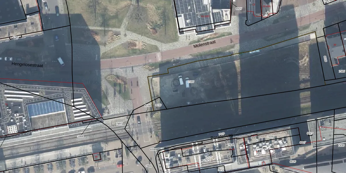 Het perceel waarop Molenstraat 4-91 staat heeft een oppervlakte van 2535 m². Dit is een zeer groot perceel. De perceeloppervlakte wordt geregistreerd door het Kadaster. Gedetailleerde informatie over de maten van dit perceel kunt u vinden in het rapport Kadastrale kaart met maatvoering van Molenstraat 4-91.