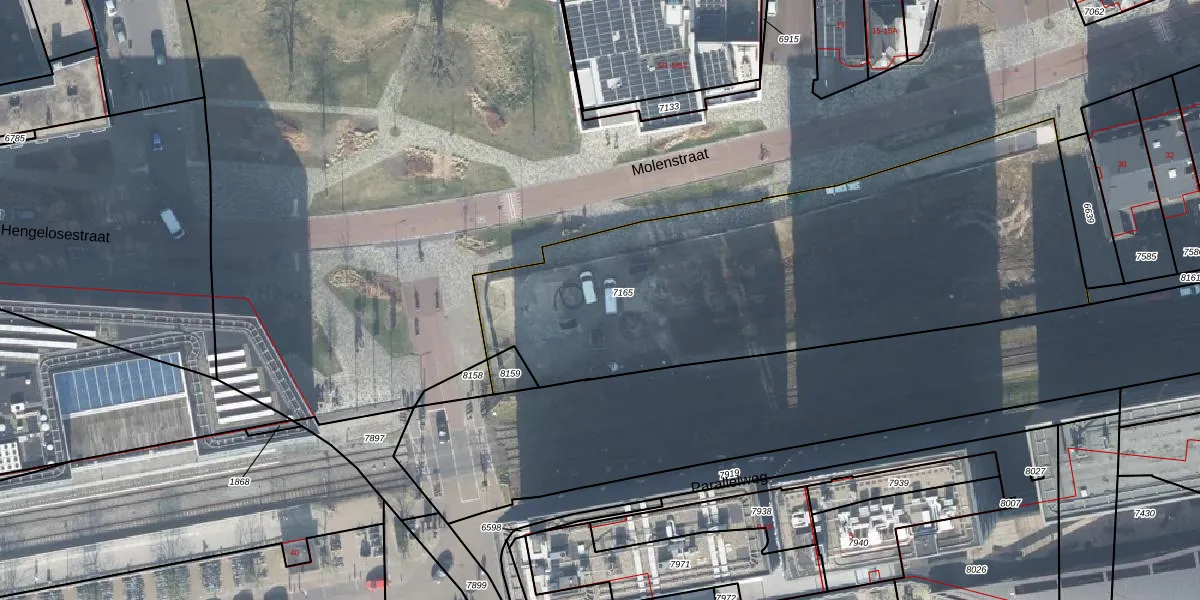 Het perceel waarop Molenstraat 4-92 staat heeft een oppervlakte van 2535 m². Dit is een zeer groot perceel. De perceeloppervlakte wordt geregistreerd door het Kadaster. Gedetailleerde informatie over de maten van dit perceel kunt u vinden in het rapport Kadastrale kaart met maatvoering van Molenstraat 4-92.
