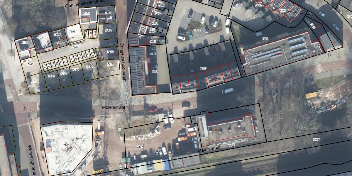 Het perceel waarop Molenstraat 55 staat heeft een oppervlakte van 872 m². Dit is een groot perceel. De perceeloppervlakte wordt geregistreerd door het Kadaster. Gedetailleerde informatie over de maten van dit perceel kunt u vinden in het rapport Kadastrale kaart met maatvoering van Molenstraat 55.