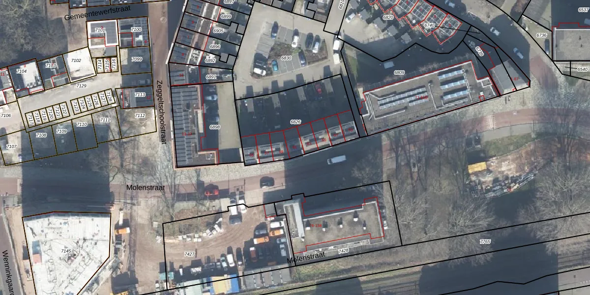 Het perceel waarop Molenstraat 61 staat heeft een oppervlakte van 872 m². Dit is een groot perceel. De perceeloppervlakte wordt geregistreerd door het Kadaster. Gedetailleerde informatie over de maten van dit perceel kunt u vinden in het rapport Kadastrale kaart met maatvoering van Molenstraat 61.