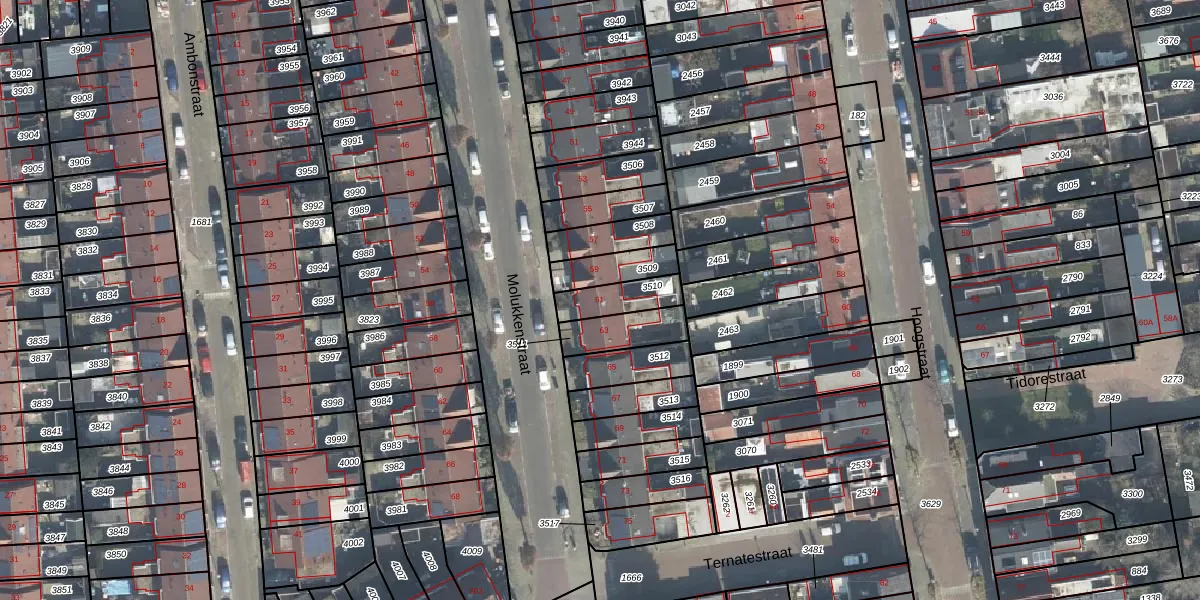 Het perceel waarop Molukkenstraat 61 staat heeft een oppervlakte van 108 m². Dit is een middelgroot perceel. De perceeloppervlakte wordt geregistreerd door het Kadaster. Gedetailleerde informatie over de maten van dit perceel kunt u vinden in het rapport Kadastrale kaart met maatvoering van Molukkenstraat 61.