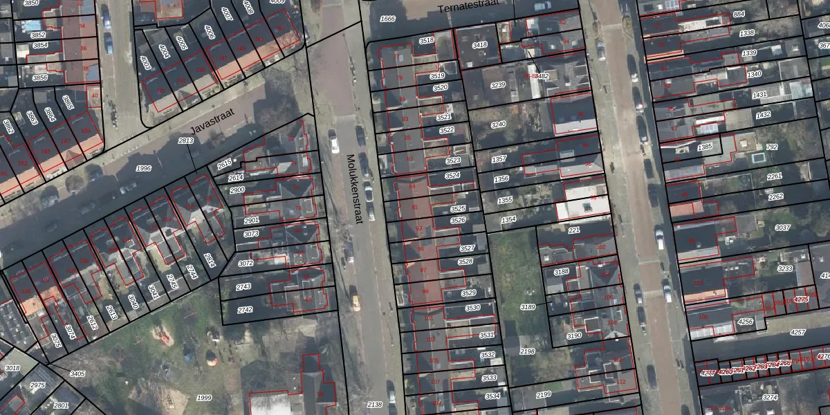 Het perceel waarop Molukkenstraat 91 staat heeft een oppervlakte van 119 m². Dit is een middelgroot perceel. De perceeloppervlakte wordt geregistreerd door het Kadaster. Gedetailleerde informatie over de maten van dit perceel kunt u vinden in het rapport Kadastrale kaart met maatvoering van Molukkenstraat 91.