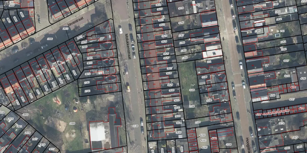 Het perceel waarop Molukkenstraat 97 staat heeft een oppervlakte van 122 m². Dit is een middelgroot perceel. De perceeloppervlakte wordt geregistreerd door het Kadaster. Gedetailleerde informatie over de maten van dit perceel kunt u vinden in het rapport Kadastrale kaart met maatvoering van Molukkenstraat 97.