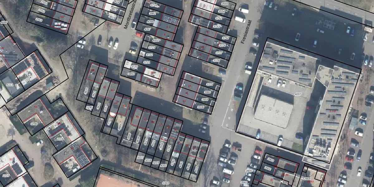 Het perceel waarop Montbretiastraat 21 staat heeft een oppervlakte van 92 m². Dit is een klein perceel. De perceeloppervlakte wordt geregistreerd door het Kadaster. Gedetailleerde informatie over de maten van dit perceel kunt u vinden in het rapport Kadastrale kaart met maatvoering van Montbretiastraat 21.