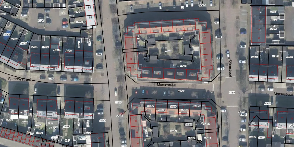 Morsestraat 1 is gelegen op kadastraal perceel LNK00O12467. Deze kadastrale aanduiding is uniek en wordt gebruikt door het Kadaster om eigendomsrechten en andere zakelijke rechten vast te leggen. Het perceel maakt onderdeel uit van de kadastrale gemeente Lonneker.