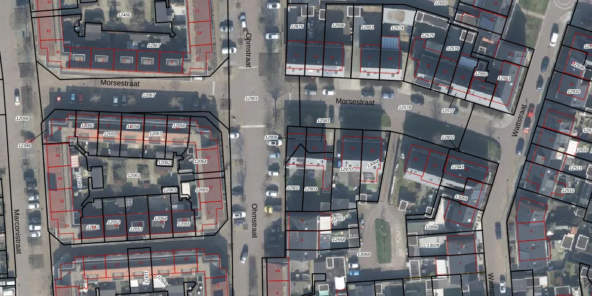 Morsestraat 12 is gelegen op kadastraal perceel LNK00O12906. Deze kadastrale aanduiding is uniek en wordt gebruikt door het Kadaster om eigendomsrechten en andere zakelijke rechten vast te leggen. Het perceel maakt onderdeel uit van de kadastrale gemeente Lonneker.