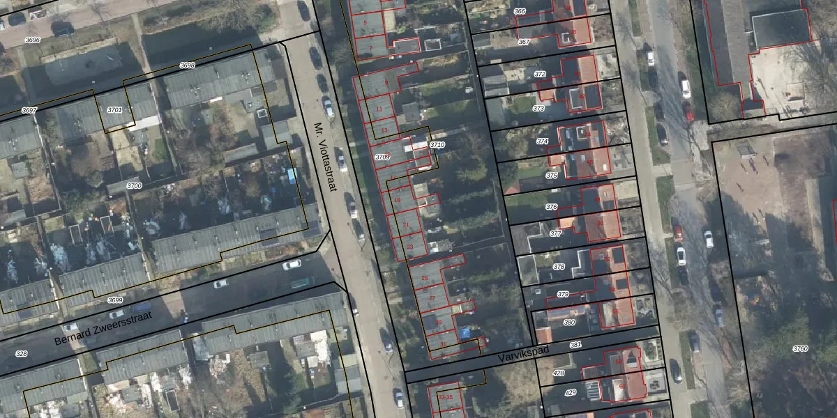 Mr. Viottastraat 19 is gelegen op kadastraal perceel LNK00P3710. Deze kadastrale aanduiding is uniek en wordt gebruikt door het Kadaster om eigendomsrechten en andere zakelijke rechten vast te leggen. Het perceel maakt onderdeel uit van de kadastrale gemeente Lonneker.