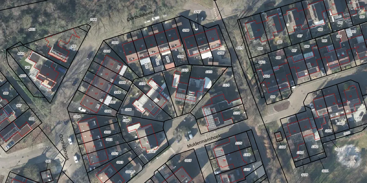 Het perceel waarop Muldermanshoek 13 staat heeft een oppervlakte van 263 m². Dit is een middelgroot perceel. De perceeloppervlakte wordt geregistreerd door het Kadaster. Gedetailleerde informatie over de maten van dit perceel kunt u vinden in het rapport Kadastrale kaart met maatvoering van Muldermanshoek 13.