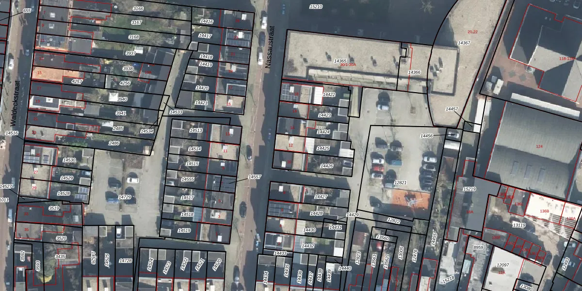 Nassaustraat 12 is gelegen op kadastraal perceel ESD00D14425. Deze kadastrale aanduiding is uniek en wordt gebruikt door het Kadaster om eigendomsrechten en andere zakelijke rechten vast te leggen. Het perceel maakt onderdeel uit van de kadastrale gemeente Enschede.