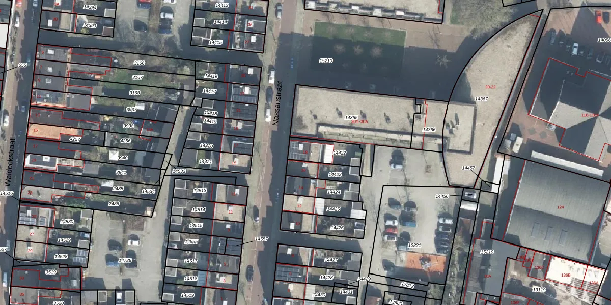Gebruik de zoekbalk of klik op een perceel voor informatie over de adressen binnen dit perceel.