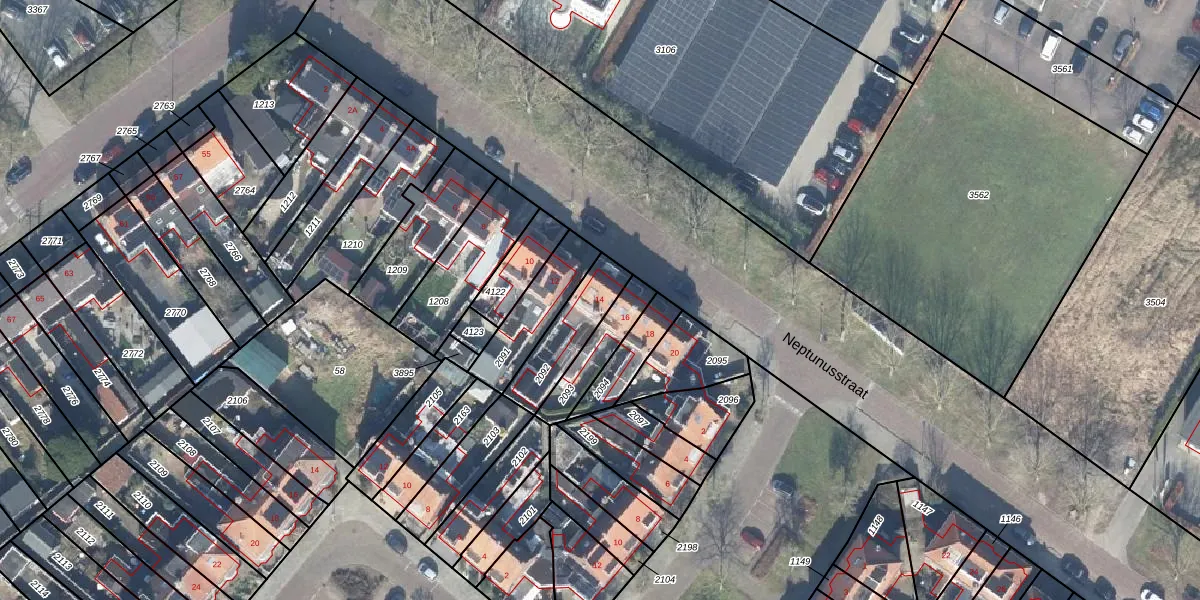 Neptunusstraat 14 is gelegen op kadastraal perceel LNK00S2092. Deze kadastrale aanduiding is uniek en wordt gebruikt door het Kadaster om eigendomsrechten en andere zakelijke rechten vast te leggen. Het perceel maakt onderdeel uit van de kadastrale gemeente Lonneker.