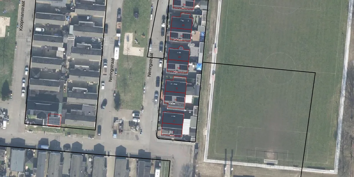 Het perceel waarop Neringstraat 8 staat heeft een oppervlakte van 2379 m². Dit is een zeer groot perceel. De perceeloppervlakte wordt geregistreerd door het Kadaster. Gedetailleerde informatie over de maten van dit perceel kunt u vinden in het rapport Kadastrale kaart met maatvoering van Neringstraat 8.