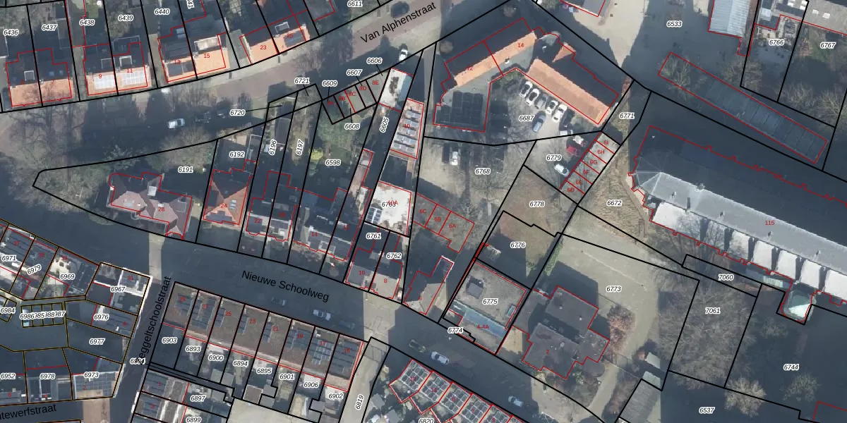 Het perceel waarop Nieuwe Schoolweg 6-C staat heeft een oppervlakte van 754 m². Dit is een groot perceel. De perceeloppervlakte wordt geregistreerd door het Kadaster. Gedetailleerde informatie over de maten van dit perceel kunt u vinden in het rapport Kadastrale kaart met maatvoering van Nieuwe Schoolweg 6-C.
