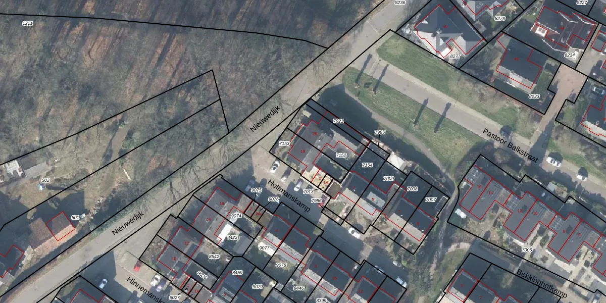Nieuwedijk 18 is gelegen op kadastraal perceel LNK00C7153. Deze kadastrale aanduiding is uniek en wordt gebruikt door het Kadaster om eigendomsrechten en andere zakelijke rechten vast te leggen. Het perceel maakt onderdeel uit van de kadastrale gemeente Lonneker.