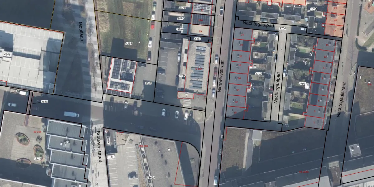 Het perceel waarop Nieuwluststraat 13 staat heeft een oppervlakte van 1050 m². Dit is een zeer groot perceel. De perceeloppervlakte wordt geregistreerd door het Kadaster. Gedetailleerde informatie over de maten van dit perceel kunt u vinden in het rapport Kadastrale kaart met maatvoering van Nieuwluststraat 13.