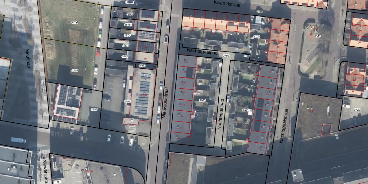 Het perceel waarop Nieuwluststraat 18 staat heeft een oppervlakte van 1163 m². Dit is een zeer groot perceel. De perceeloppervlakte wordt geregistreerd door het Kadaster. Gedetailleerde informatie over de maten van dit perceel kunt u vinden in het rapport Kadastrale kaart met maatvoering van Nieuwluststraat 18.