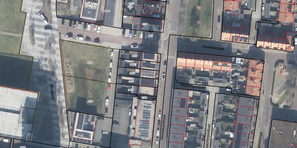 Gebruik de zoekbalk of klik op een perceel voor informatie over de adressen binnen dit perceel.