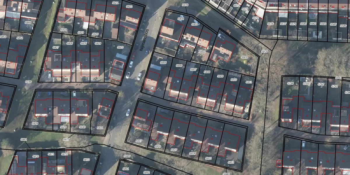 Nijmansbos 11 is gelegen op kadastraal perceel LNK00H5906. Deze kadastrale aanduiding is uniek en wordt gebruikt door het Kadaster om eigendomsrechten en andere zakelijke rechten vast te leggen. Het perceel maakt onderdeel uit van de kadastrale gemeente Lonneker.