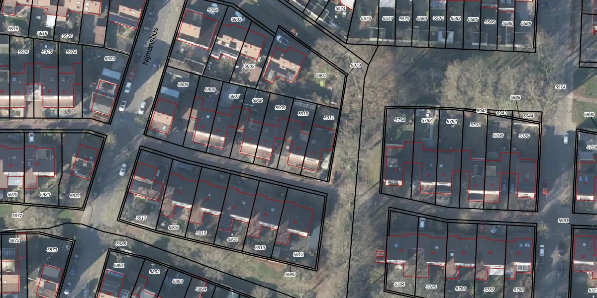 Nijmansbos 19 is gelegen op kadastraal perceel LNK00H5910. Deze kadastrale aanduiding is uniek en wordt gebruikt door het Kadaster om eigendomsrechten en andere zakelijke rechten vast te leggen. Het perceel maakt onderdeel uit van de kadastrale gemeente Lonneker.