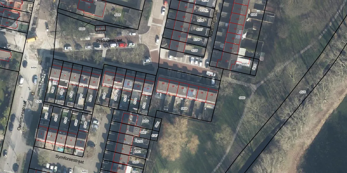 Het perceel waarop Nocturnestraat 37 staat heeft een oppervlakte van 928 m². Dit is een groot perceel. De perceeloppervlakte wordt geregistreerd door het Kadaster. Gedetailleerde informatie over de maten van dit perceel kunt u vinden in het rapport Kadastrale kaart met maatvoering van Nocturnestraat 37.