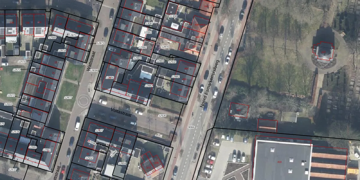 Het perceel waarop Noord Esmarkerrondweg 468 staat heeft een oppervlakte van 608 m². Dit is een groot perceel. De perceeloppervlakte wordt geregistreerd door het Kadaster. Gedetailleerde informatie over de maten van dit perceel kunt u vinden in het rapport Kadastrale kaart met maatvoering van Noord Esmarkerrondweg 468.