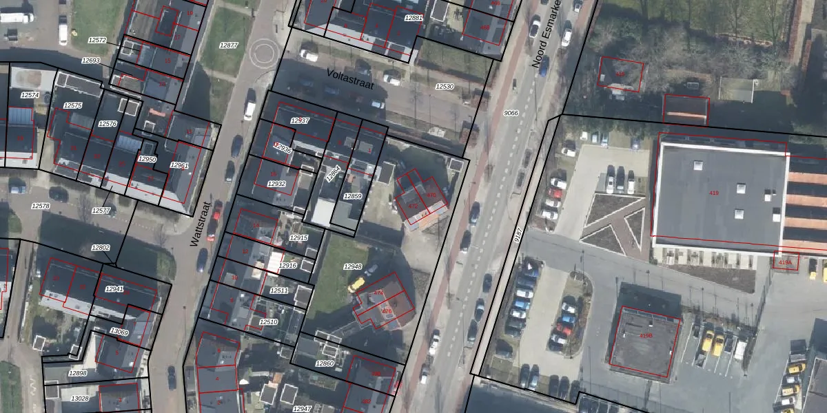 Noord Esmarkerrondweg 472 is gelegen op kadastraal perceel LNK00O12948. Deze kadastrale aanduiding is uniek en wordt gebruikt door het Kadaster om eigendomsrechten en andere zakelijke rechten vast te leggen. Het perceel maakt onderdeel uit van de kadastrale gemeente Lonneker.
