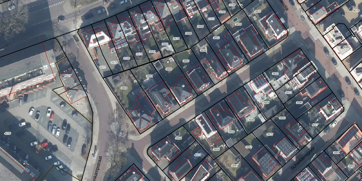 Gebruik de zoekbalk of klik op een perceel voor informatie over de adressen binnen dit perceel.