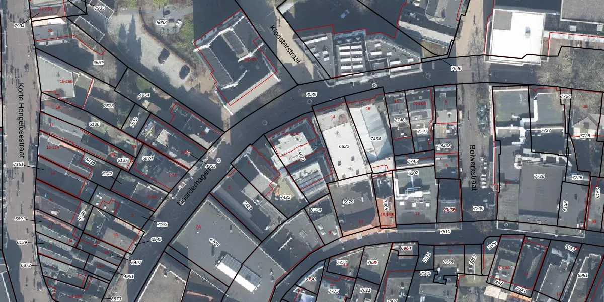 Het perceel waarop Noorderhagen 12-16 staat heeft een oppervlakte van 400 m². Dit is een groot perceel. De perceeloppervlakte wordt geregistreerd door het Kadaster. Gedetailleerde informatie over de maten van dit perceel kunt u vinden in het rapport Kadastrale kaart met maatvoering van Noorderhagen 12-16.
