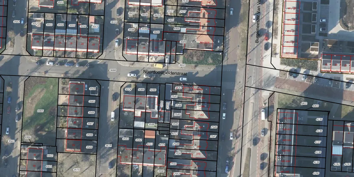 Noordoostpolderstraat 5 is gelegen op kadastraal perceel LNK00H2542. Deze kadastrale aanduiding is uniek en wordt gebruikt door het Kadaster om eigendomsrechten en andere zakelijke rechten vast te leggen. Het perceel maakt onderdeel uit van de kadastrale gemeente Lonneker.