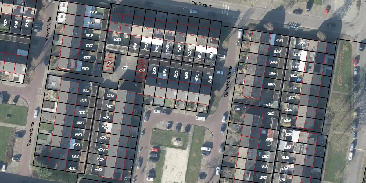 Gebruik de zoekbalk of klik op een perceel voor informatie over de adressen binnen dit perceel.