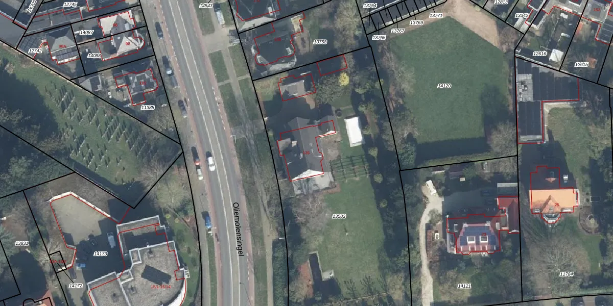 Het perceel waarop Oliemolensingel 135 staat heeft een oppervlakte van 3465 m². Dit is een zeer groot perceel. De perceeloppervlakte wordt geregistreerd door het Kadaster. Gedetailleerde informatie over de maten van dit perceel kunt u vinden in het rapport Kadastrale kaart met maatvoering van Oliemolensingel 135.