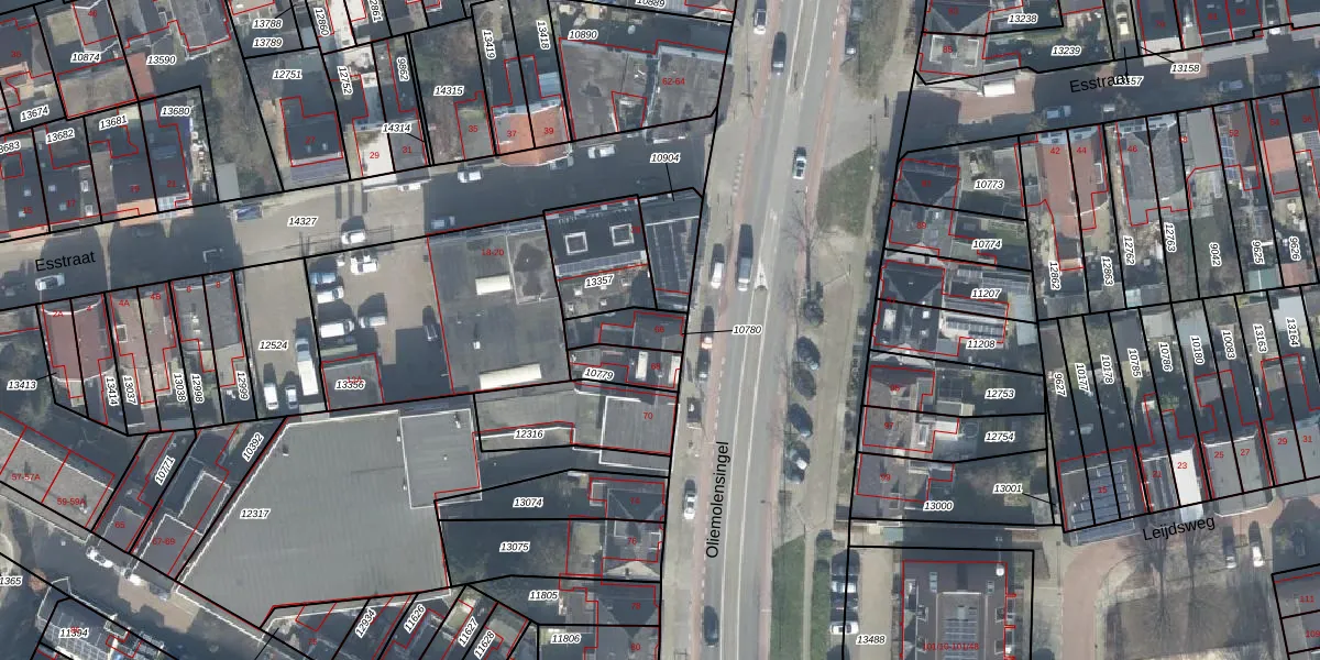 Gebruik de zoekbalk of klik op een perceel voor informatie over de adressen binnen dit perceel.