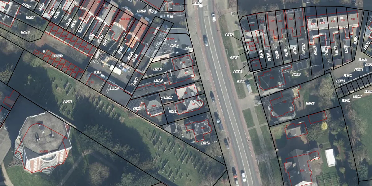 Gebruik de zoekbalk of klik op een perceel voor informatie over de adressen binnen dit perceel.