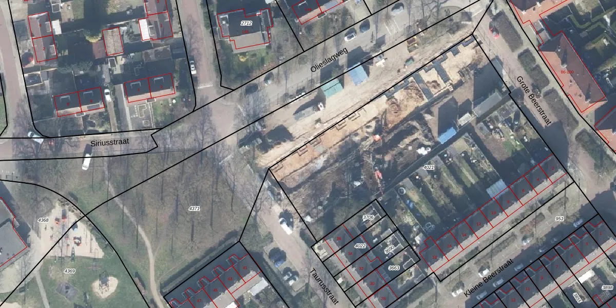 Het perceel waarop Olieslagweg 169 staat heeft een oppervlakte van 4156 m². Dit is een zeer groot perceel. De perceeloppervlakte wordt geregistreerd door het Kadaster. Gedetailleerde informatie over de maten van dit perceel kunt u vinden in het rapport Kadastrale kaart met maatvoering van Olieslagweg 169.