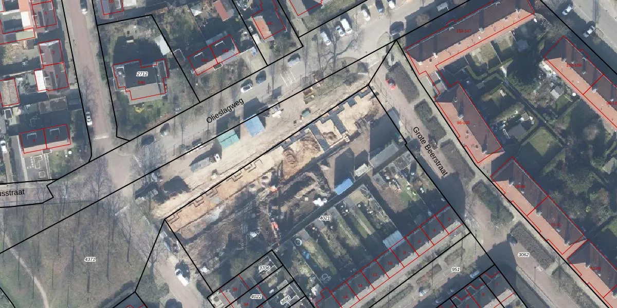 Het perceel waarop Olieslagweg 199 staat heeft een oppervlakte van 4156 m². Dit is een zeer groot perceel. De perceeloppervlakte wordt geregistreerd door het Kadaster. Gedetailleerde informatie over de maten van dit perceel kunt u vinden in het rapport Kadastrale kaart met maatvoering van Olieslagweg 199.