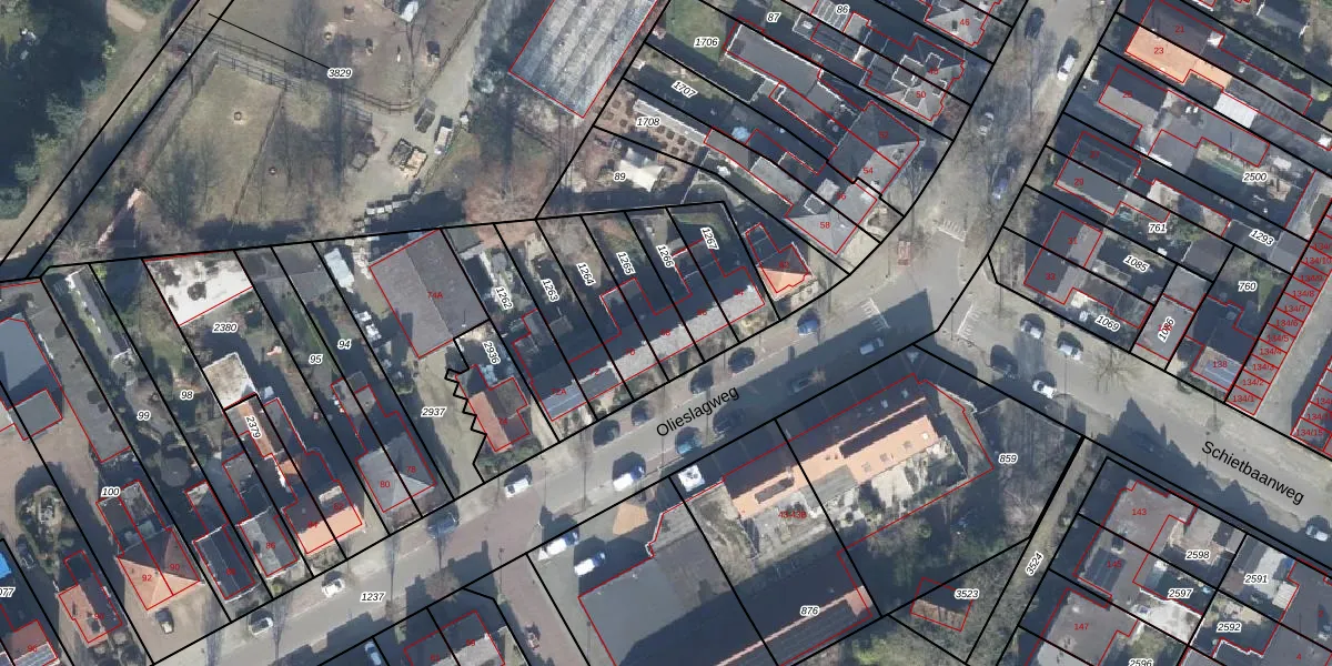 Gebruik de zoekbalk of klik op een perceel voor informatie over de adressen binnen dit perceel.
