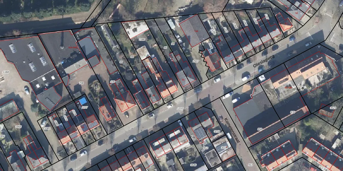 Het perceel waarop Olieslagweg 82 staat heeft een oppervlakte van 504 m². Dit is een groot perceel. De perceeloppervlakte wordt geregistreerd door het Kadaster. Gedetailleerde informatie over de maten van dit perceel kunt u vinden in het rapport Kadastrale kaart met maatvoering van Olieslagweg 82.