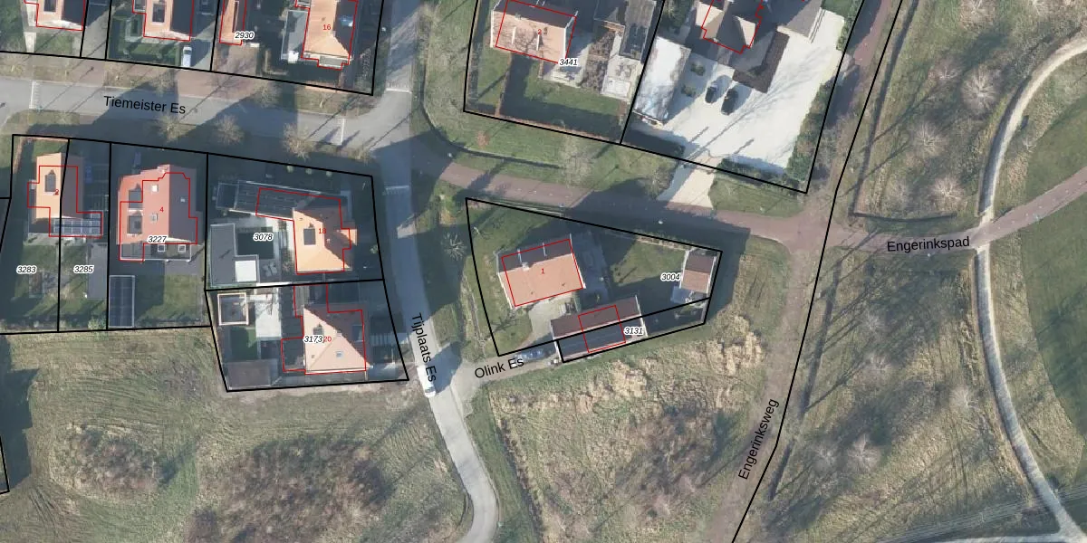Olink Es 1 is gelegen op kadastraal perceel LNK00P3004. Deze kadastrale aanduiding is uniek en wordt gebruikt door het Kadaster om eigendomsrechten en andere zakelijke rechten vast te leggen. Het perceel maakt onderdeel uit van de kadastrale gemeente Lonneker.