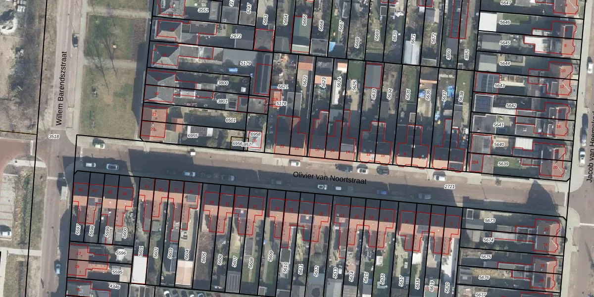 Het perceel waarop Olivier van Noortstraat 20 staat heeft een oppervlakte van 204 m². Dit is een middelgroot perceel. De perceeloppervlakte wordt geregistreerd door het Kadaster. Gedetailleerde informatie over de maten van dit perceel kunt u vinden in het rapport Kadastrale kaart met maatvoering van Olivier van Noortstraat 20.