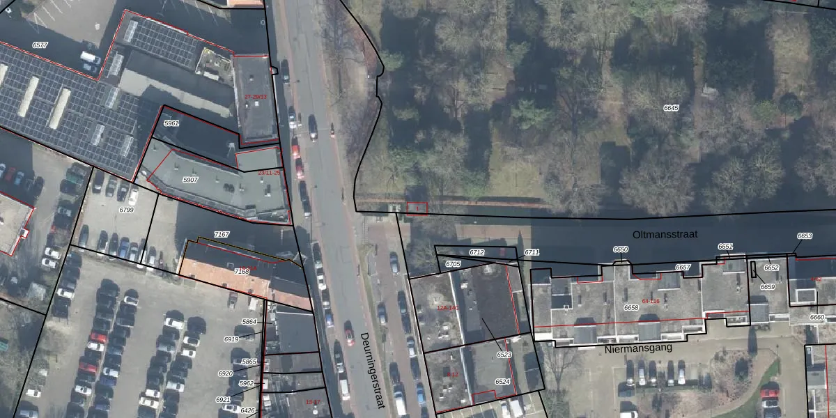 Het perceel waarop Oltmansstraat 1 staat heeft een oppervlakte van 1,0 ha. Dit is een zeer groot perceel. De perceeloppervlakte wordt geregistreerd door het Kadaster. Gedetailleerde informatie over de maten van dit perceel kunt u vinden in het rapport Kadastrale kaart met maatvoering van Oltmansstraat 1.
