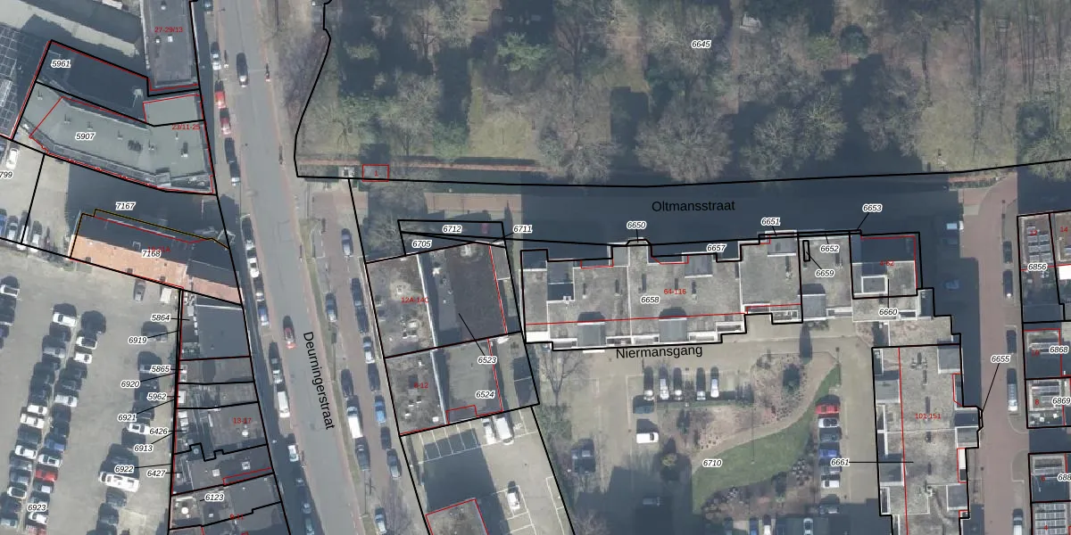 Het perceel waarop Oltmansstraat 116 staat heeft een oppervlakte van 844 m². Dit is een groot perceel. De perceeloppervlakte wordt geregistreerd door het Kadaster. Gedetailleerde informatie over de maten van dit perceel kunt u vinden in het rapport Kadastrale kaart met maatvoering van Oltmansstraat 116.