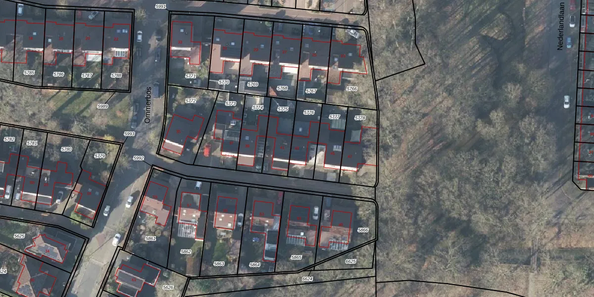 Het perceel waarop Ommerbos 43 staat heeft een oppervlakte van 224 m². Dit is een middelgroot perceel. De perceeloppervlakte wordt geregistreerd door het Kadaster. Gedetailleerde informatie over de maten van dit perceel kunt u vinden in het rapport Kadastrale kaart met maatvoering van Ommerbos 43.